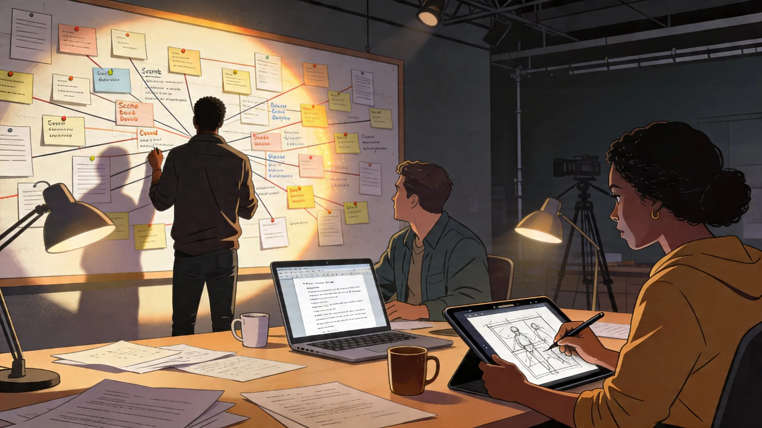 K!CK Productions provides creative development and script collaboration through a team of accomplished writers and creators for film, series, and animated projects. We originate concepts, build worlds, and refine scripts into production-ready screenplays designed to move audiences and flow directly into visualization, production, and post.